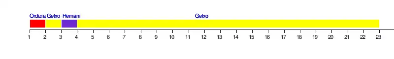 | Getxo | 17-29 | 28-34 | 28-38 | 12-26 | 0-64 | 10-48 | 18-22 | 37-22 | - | 3-39 | - | |