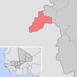 Se encuentra ubicada al suroeste del país, al sur de la capital nacional, Bamako, y cerca de la frontera con Costa de Marfil y República de Guinea.