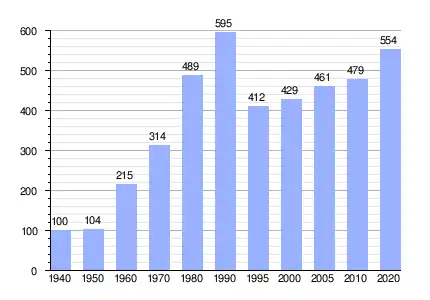 Población de los censos y conteos del Instituto Nacional de Estadística y Geografía (INEGI).[6] |