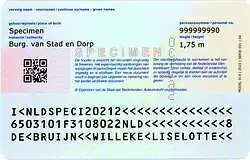 - ↑ «European identity card (back)». Ministerio del Interior y Relaciones del Reino (Países Bajos) (en inglés). 25 de junio de 2009. Consultado el 28 de junio de 2010.