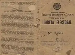 - ↑ peru.com. «¿Sabías que así evolucionó la libreta electoral hasta actual DNI?». Archivado desde el original el 26 de abril de 2017. Consultado el 26 de abril de 2017.