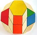 Una de las formas en que se utilizan es como bloques patrón en matemática manipulativa, creando distintos dodecágonos diferentes a partir de otras figuras.[5] Están relacionados con las disecciones rómbicas, con 3 rombos de 60° fusionados en hexágonos, trapecios de medio hexágono o divididos en 2 triángulos equiláteros.
