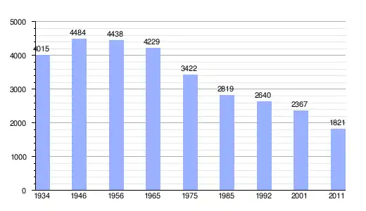 | Gráfica de evolución demográfica de Dolni Lúkovit entre 1934 y 2011 |