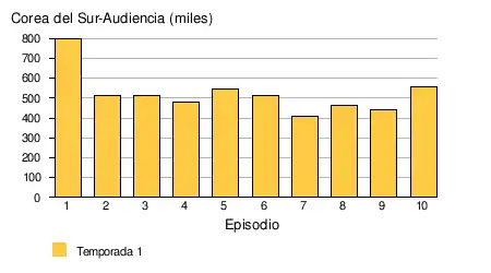 Según Nielsen Korea, el índice de audiencia del primer episodio fue un promedio de 3,9 % y un máximo de 5,2 % para los hogares del área metropolitana de Seúl, y un promedio de 3,8 % y un máximo de 5,0 % para los hogares de todo el país, datos con los que ocupó el primer lugar en su franja horaria, incluyendo programación de cable y general. La serie precedente en la programación de tvN (No hay amor desinteresado) había obtenido con su primer episodio el 3,7 % nacional.[10][24]