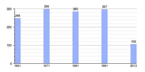 | Gráfica de evolución demográfica de Donja Bioča entre 1961 y 2013 |