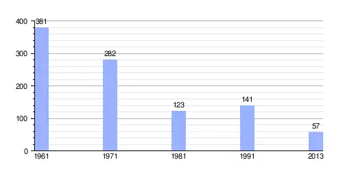 | Gráfica de evolución demográfica de Donja Presjenica entre 1961 y 2013 |