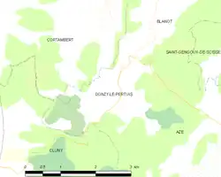 Donzy-le-Pertuis es una población y comuna francesa, en la región de Borgoña, departamento de Saona y Loira, en el distrito de Mâcon y cantón de Cluny.