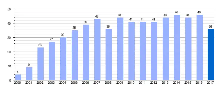 | Gráfica de evolución demográfica de Dordóniz entre 2000 y 2017 |