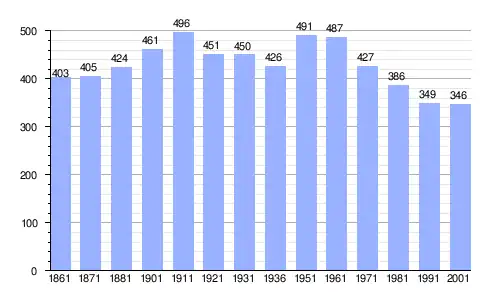 | Gráfica de evolución demográfica de Dorio entre 1861 y 2001 |