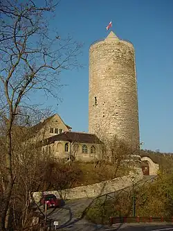 - Esta obra contiene una traducción derivada de «Dornburg-Camburg» de Wikipedia en inglés, publicada por sus editores bajo la Licencia de documentación libre de GNU y la Licencia Creative Commons Atribución-CompartirIgual 4.0 Internacional.