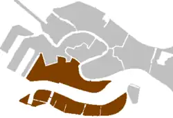La parte occidental del distrito se compone de la isla de Mendigola, que estaba entre las primeras zonas de la ciudad para ser colonizada, algunos siglos antes de que el Rialto se convirtió en el centro neurálgico de Venecia (810).