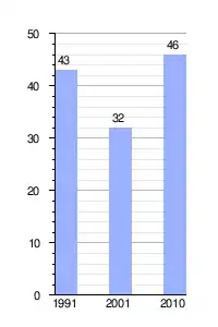 | Gráfica de evolución demográfica de Dos Arroyos entre 1991 y 2010 |