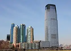 - ↑ McDonald, Terrence T. "Plans for N.J.'s new tallest tower get federal OK", The Jersey Journal, January 12, 2016. Accessed January 14, 2016. "China Oversea America is behind the project, which is set to include 781 condo units. Originally planned to rise 950 feet and include 95 stories, the newest plans have it topping out at 900 feet and 79 stories."