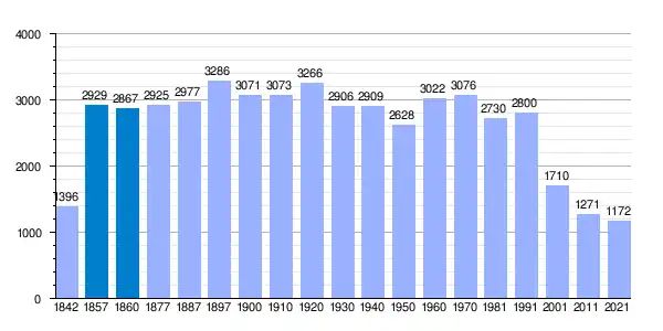 | Gráfica de evolución demográfica de Dozón[2] entre 1842 y 2021 |