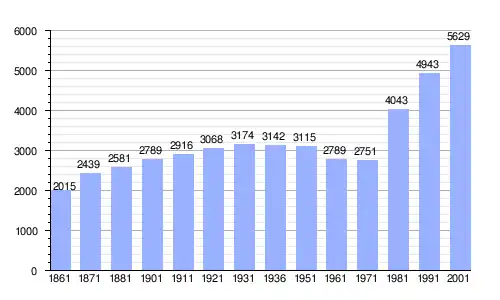 | Gráfica de evolución demográfica de Dozza entre 1861 y 2001 |