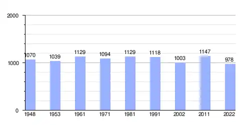 Hasta 2022 la población era de 978 habitantes,[3] con una densidad de población de 99,21 habitantes por kilómetro cuadrado.[3]