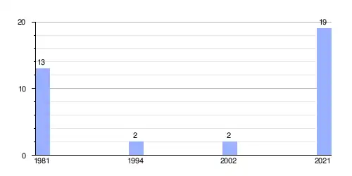 | Gráfica de evolución demográfica de Drenok entre 1981 y 2021 |