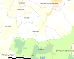 Drouges es una población y comuna francesa, situada en la región de Bretaña, departamento de Ille y Vilaine, en el distrito de Rennes y cantón de La Guerche-de-Bretagne.