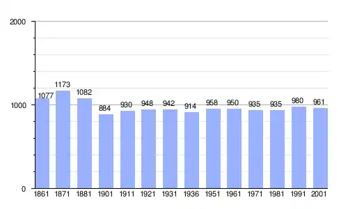 | Gráfica de evolución demográfica de Druogno entre 1861 y 2001 |
