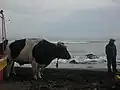 De las alturas vecinas al E. cae al mar una punta medianamente alta y escarpada con uno que otro arrecife á su extremo, y en ellos naufragó en 1858 el vapor «Valdivia» de la compañía inglesa de navegación.[6]