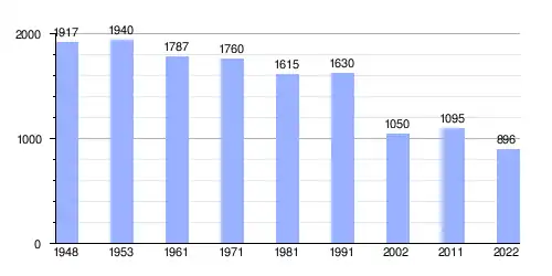 Hasta 2022 la población era de 896 habitantes,[3] con una densidad de población de 56,18 habitantes por kilómetro cuadrado.[3]