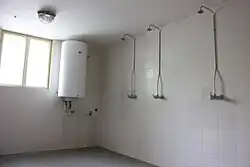 - Ducha de campo, un tipo de ducha colectiva usada por personal del ejército, cuando se encuentran fuera de su zona de acuartelamiento, durante unas maniobras militares o un combate.