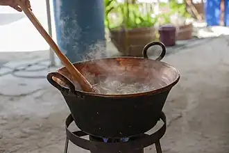 Tradicionalmente se hacía en cacerola de cobre que se colocaba en la leña y era servido en fiestas importantes del municipio.[4]