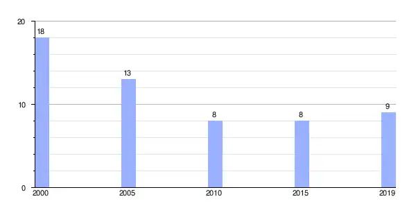 | Gráfica de evolución demográfica de Dumbría (aldea) entre 2000 y 2019 |