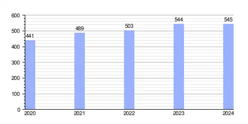 | Gráfica de evolución demográfica de Dunaszentmiklós entre 2020 y 2024 |