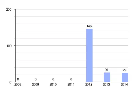 Deuda viva del ayuntamiento en miles de Euros según datos del Ministerio de Hacienda y Ad. Públicas.[9] |