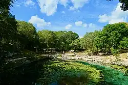 Otra característica importante de Dzibilchaltún es su cenote, en el que es posible bañarse. Se trata del cenote Xlacah, el más importante cenote abierto de la zona arqueológica de Dzibilchaltún y que fue utilizado como abastecimiento de agua para los mayas. En algunas partes alcanza los 40m. de profundidad. Mide 40 metros de ancho y 100 de largo. Su nombre es una voz maya que significa "Pueblo viejo".[8]