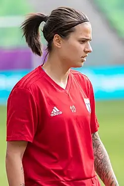 Dzsenifer Marozsán (Budapest, Hungría; 18 de abril de 1992) es una futbolista alemana nacida en Hungría. Juega como centrocampista en el Olympique de Lyon de la Première Ligue de Francia. Es internacional con la selección de Alemania.