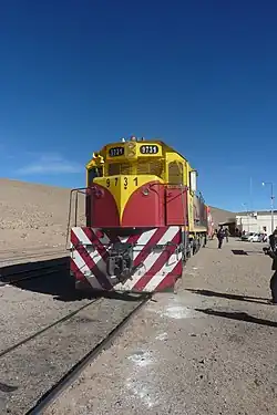 ![]() Una GT22CW (9015) de Ferrosur Roca liderando un tren de mercancías. | ||