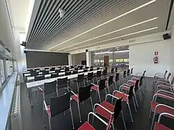 - (1969-Actualidad) Edificio de la Ciudad Universitaria: el amplio edificio actual fue proyectado por Luis Laorga y José López Zanón, como solución al problema de la falta de espacio en su ubicación anterior. Se trata de una edificación de corte eminentemente funcional y racionalista, sin la más mínima concesión a elementos de tipo ornamental, estructurada mediante grandes volúmenes prismáticos delimitados por paramentos de hormigón visto.