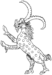 [...] Entre la misma gente también se encuentra el eale que es del tamaño de un hipopótamo, tiene cola de elefante, color negro o leonado (amarillo), mandíbula de jabalí y cuernos móviles que miden más de un codo que yergue de forma alterna en la lucha y los presenta para atacar o los inclina hacia atrás según le convenga.