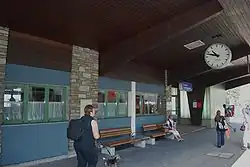 Parada del tren en Ebensee Landungsplatz La parada Ebensee Landungsplatz consta de un edificio de Estación con una sala de espera, unos servicios públicos, una máquina expendedora de billetes, una parada de autobús y un restaurante.
