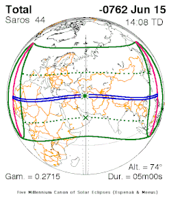 - Mapa de ruta de los eclipses 780 a. C. - 761 a. C. (NASA) - Incluye el eclipse total del 15 de junio de 763 a. C. (etiquetado como -0762 15 de junio)