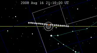 ![]() Representación del movimiento de la Luna (nodo ascendente) en la constelación de Capricornio, durante 24 horas. | |||