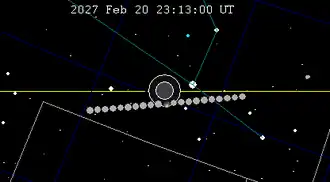 - ↑ «Penumbral Lunar Eclipse on February 20-21, 2027». timeanddate.com. Consultado el 31 de agosto de 2025.