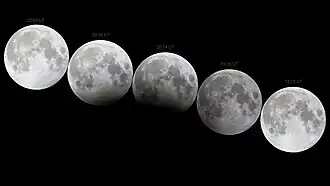 ![]() La Luna pasando de derecha a izquierda a través de la sombra de la Tierra. | |