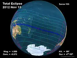 - Eclipse total de sol del 13 de noviembre de 2012 en la página web de la NASA (en inglés)