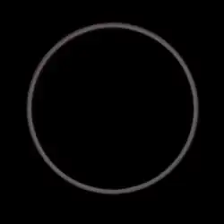 ![]() Eclipse solar anular visto dentro de 170 metros de la línea central del eclipse y dentro de 1 segundo del eclipse máximo (Hobbs, Nuevo México, EE. UU.). ![]() Recorrido del eclipse solar. | ||