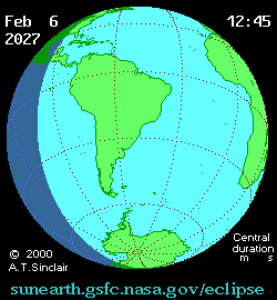 - ↑ Fred Espenak. «Annular Solar Eclipse of 2027 Feb 06». eclipsewise.com. Consultado el 30 de agosto de 2025.