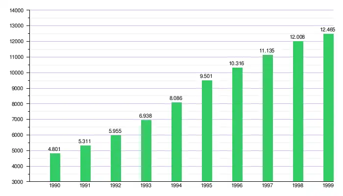 | Gráfica del crecimiento del producto interno bruto de El Salvador 1990-1999 |