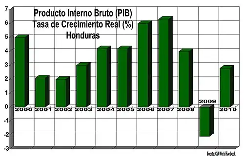 Desde 2004 hasta el 2007, el PIB real en Honduras creció a más del 6% por año. Durante el 2006 y 2007 las tasas de crecimiento del PIB fueron más altas de lo que habían sido durante los cuatro años anteriores, con Honduras a la cabeza de los países centroamericanos con la excepción de Costa Rica.