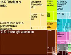 | Productos exportados | Pescado y derivados, aluminio, productos animales, ferrosilicio, diatomita. | |