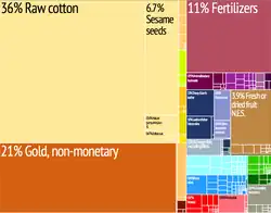 En 2018, el país fue el décimo productor de aceite de algodón en el mundo (61,6 mil toneladas) y el 24.º productor de aceite de maní en el mundo (24,2 mil toneladas).[10]