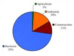 Por sectores productivos, el mayor número de desempleados se encuentra en el sector servicios, a continuación se sitúan la industria y la construcción, mientras que el sector primario es el que menos paro registra.[15]