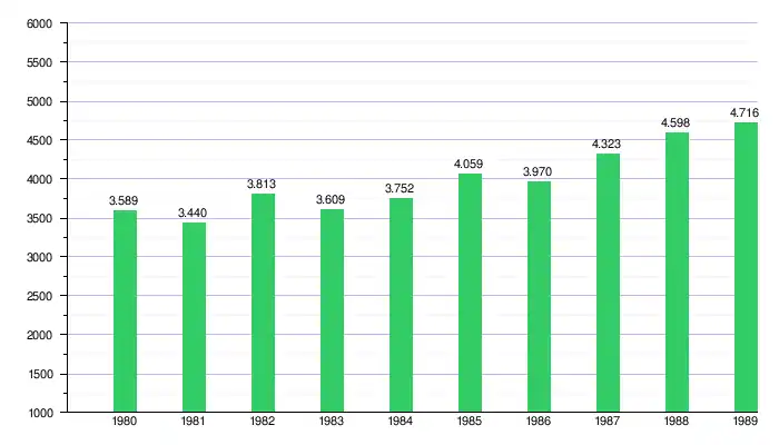 | Década | Producción Anual Promedio | Rendimiento Máximo Anual | Rendimiento Mínimo Anual |