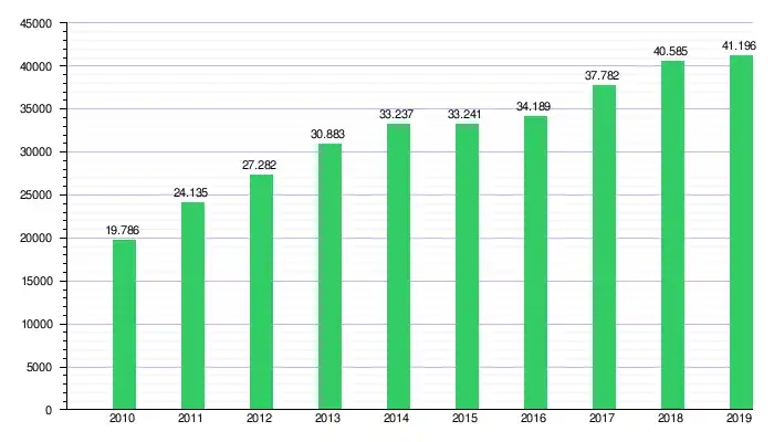 Según estudios internacionales, en 2019 la economía total de Bolivia ascendió a los 43.087 millones de dólares (producto interno bruto). Dividiendo este producto interno bruto por la cantidad de población que tiene Bolivia (más de 11 millones de habitantes) el país posee un PIB per cápita de más de 3 mil dólares (en nominal) y un PIB per cápita de más de 8 mil dólares (en PPA),[22] esto mencionando también que desde el año 2010, Bolivia dejó el grupo de países de ingresos bajos, y pasó a pertenecer a la categoría de países de ingresos medios según estudios del Banco Mundial.[23][24][25][26]
